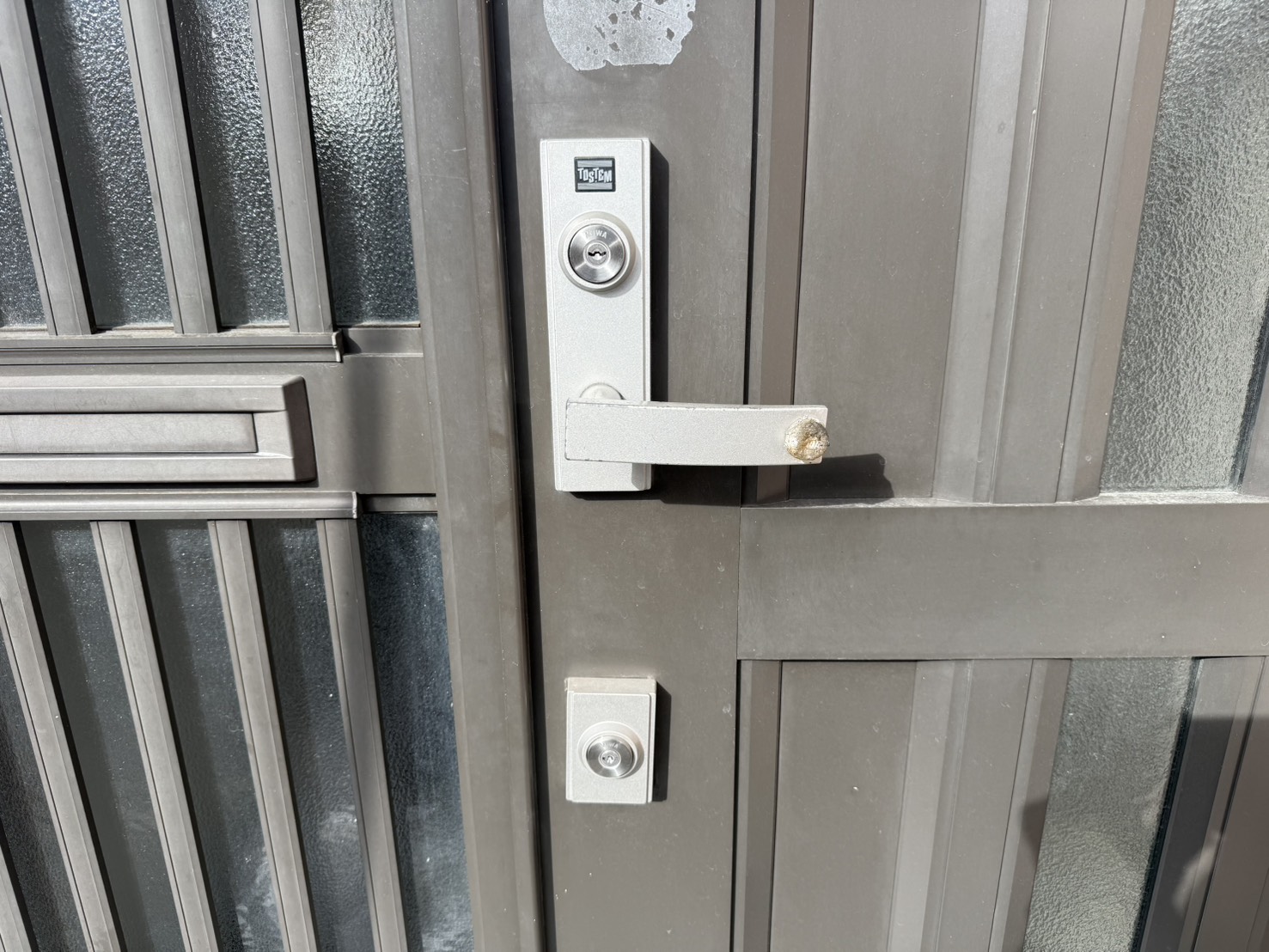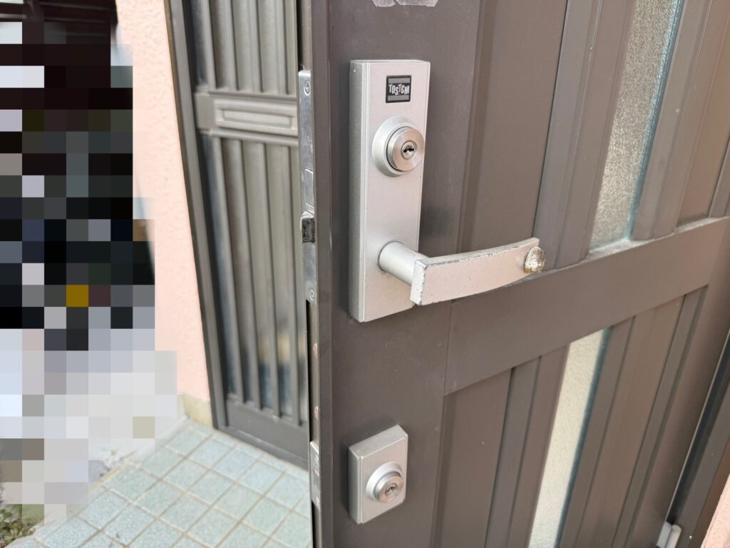 使用されていたのはTOSTEM(トステム)製の玄関ドアで、設置から約15年が経過しているタイプ。
