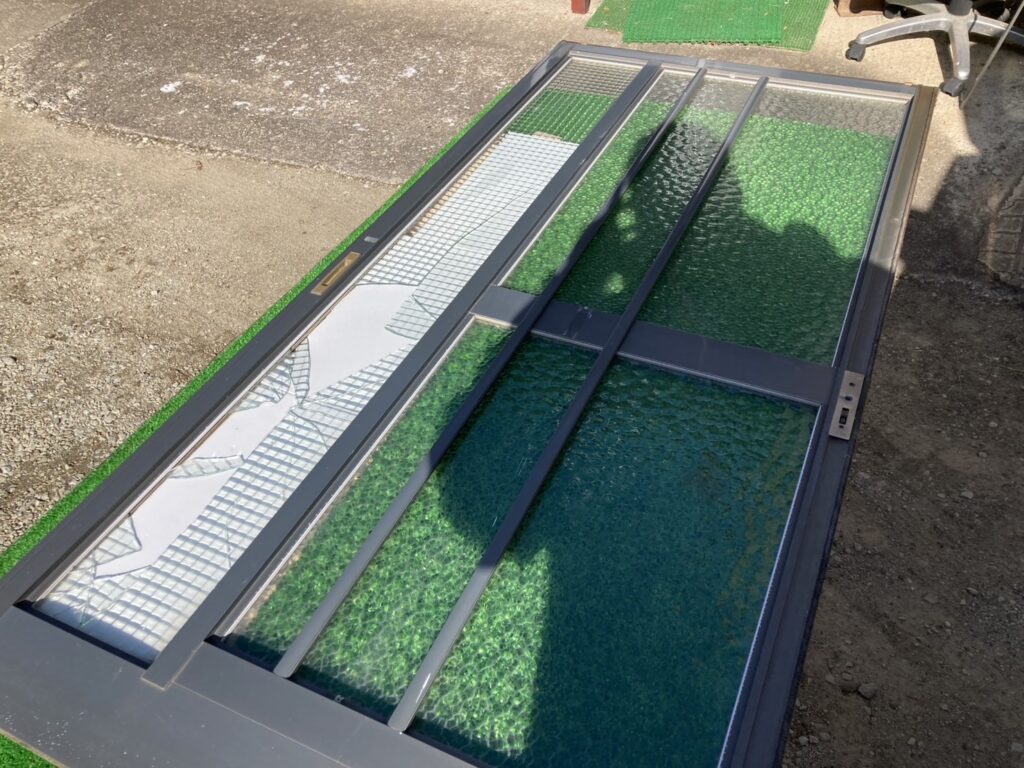 現場を確認すると、ガラスは一般的な4ミリ型ガラス(くもり模様入り)が使用されていました。