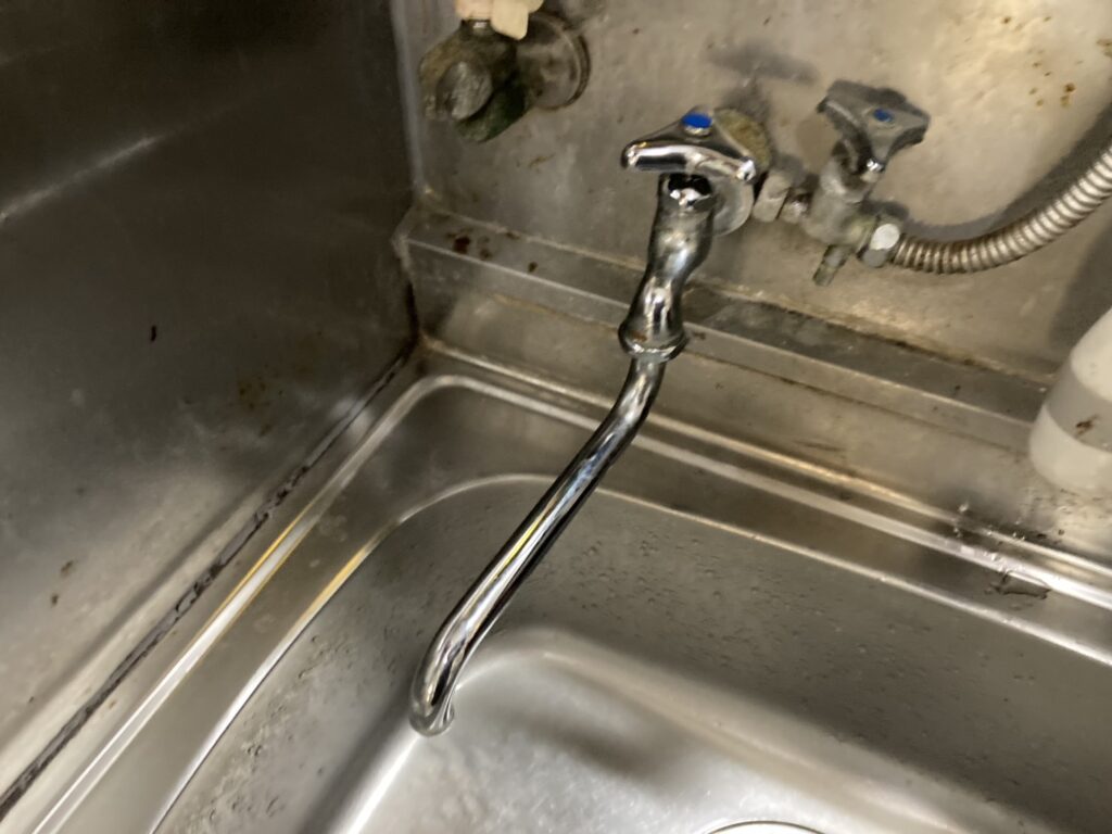 現場は千曲市内の戸建住宅。長年使ってきた単水栓のレバーを閉めてもチョロチョロと水が止まらず、使いづらい状態になっていました。
