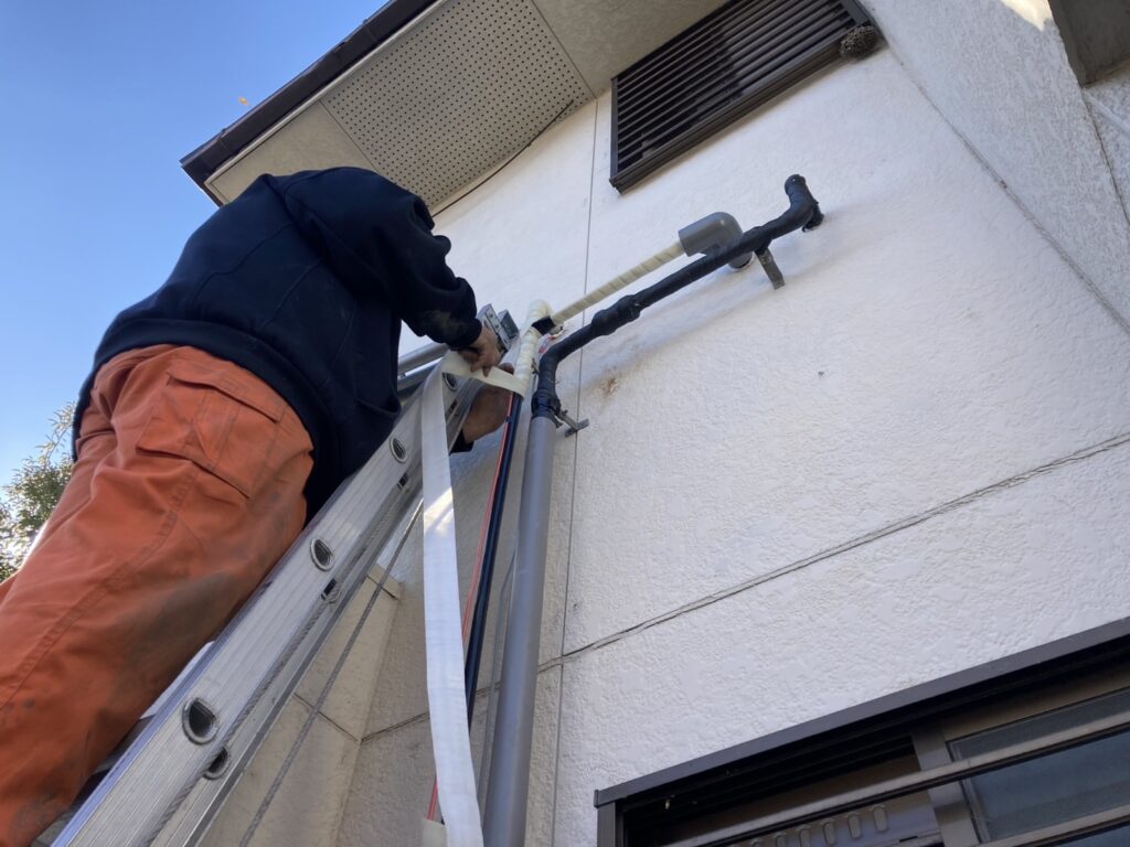 給水管交換後は、再び凍結を起こさないように保温材の巻き付けを行いました。