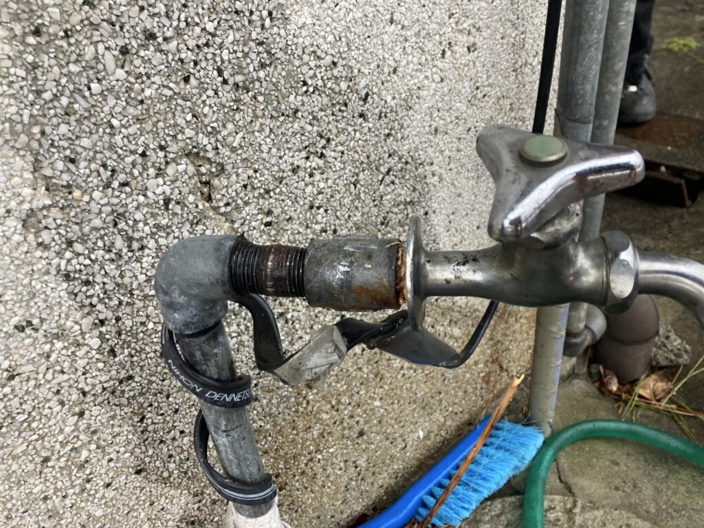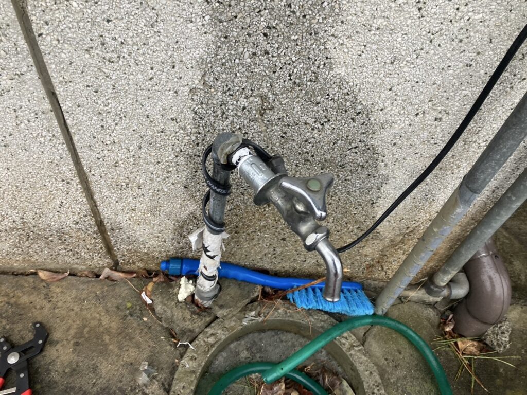 飯田市にお住まいの方から「屋外水栓の継ぎ手周辺から水がポタポタ漏れている」とご相談がありました。