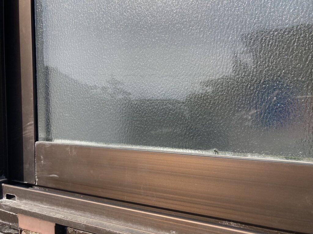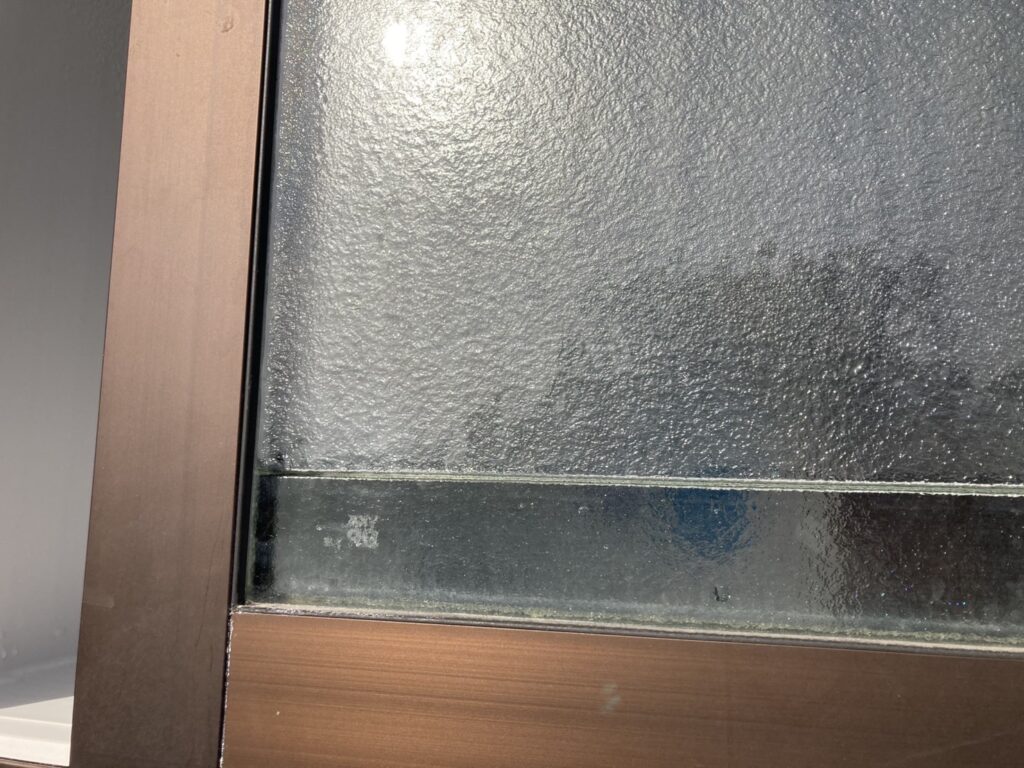 最初は「結露かな?」と思いましたが、掃除しても取れず、どうやらペアガラス内部の空気層に水が入っていることが判明しました。