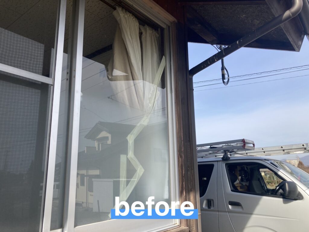 松本市内の戸建て賃貸を退居予定のお客様から、「退居に伴い割れた窓ガラスの原状回復をお願いしたい」とご相談をいただきました。