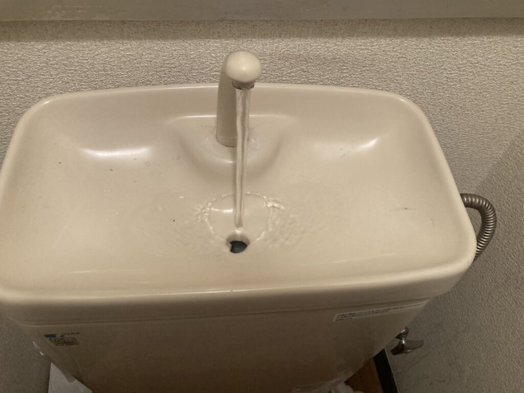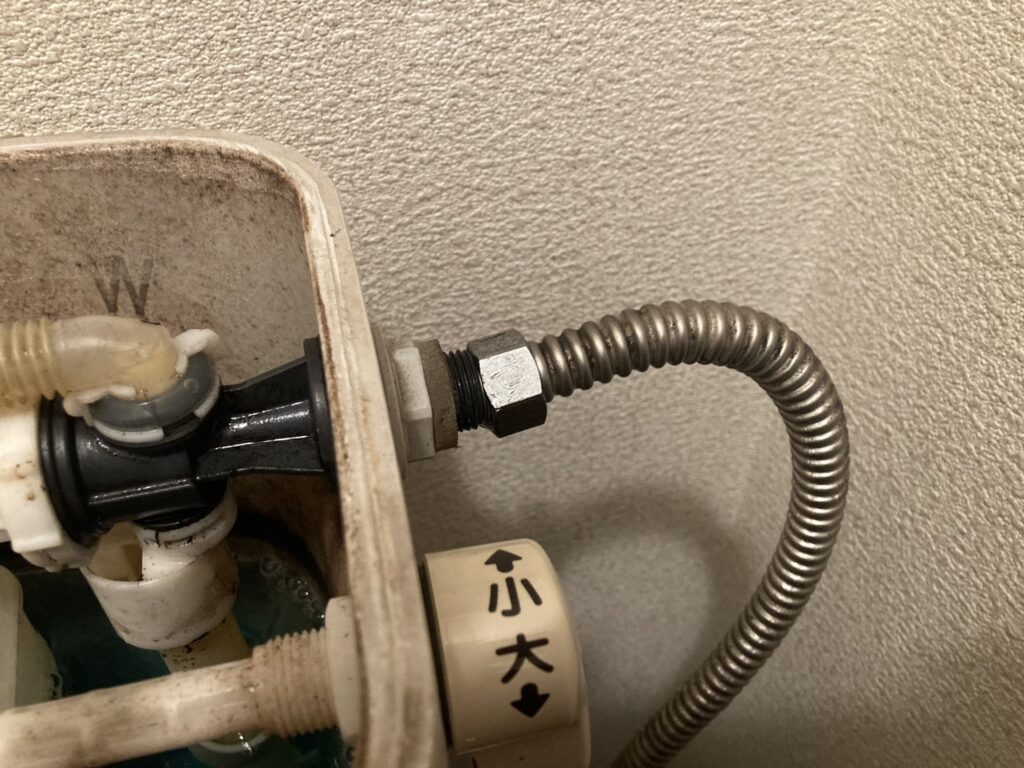 現地で確認すると、トイレタンクに繋がるフレキ管の内部で給水が止まっていることが判明しました。