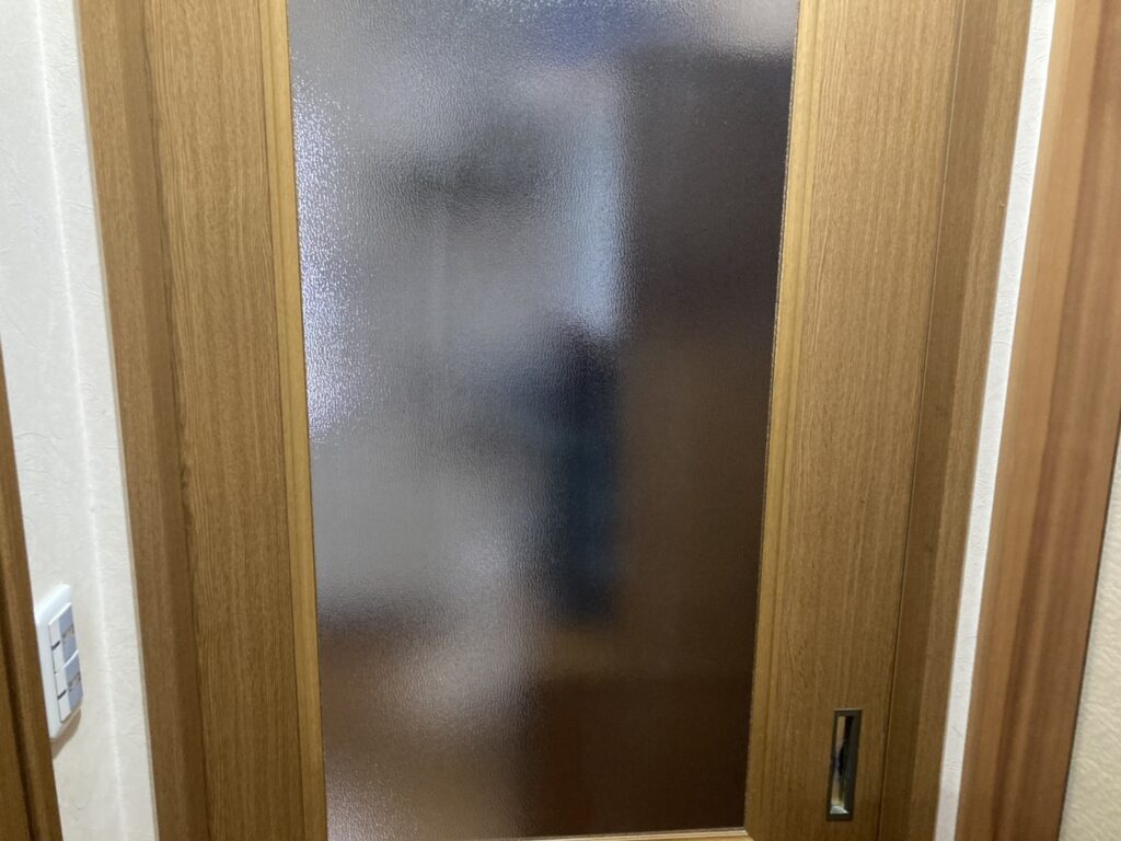 室内引き戸に入っているタイプで、模様入りの型ガラスが使われていました。