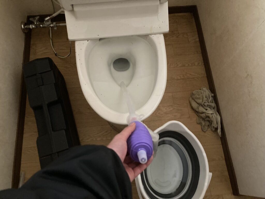 詰まりの原因を特定し、ローポンプ作業(圧力ポンプ)を実施。