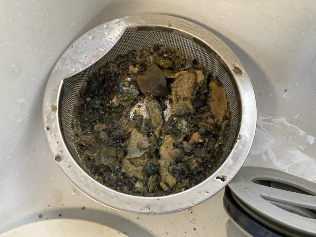 今回の詰まりの主な原因は、油汚れの蓄積と食材カス。