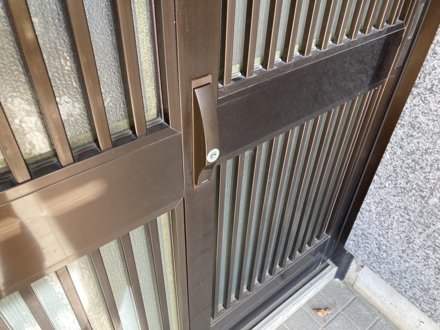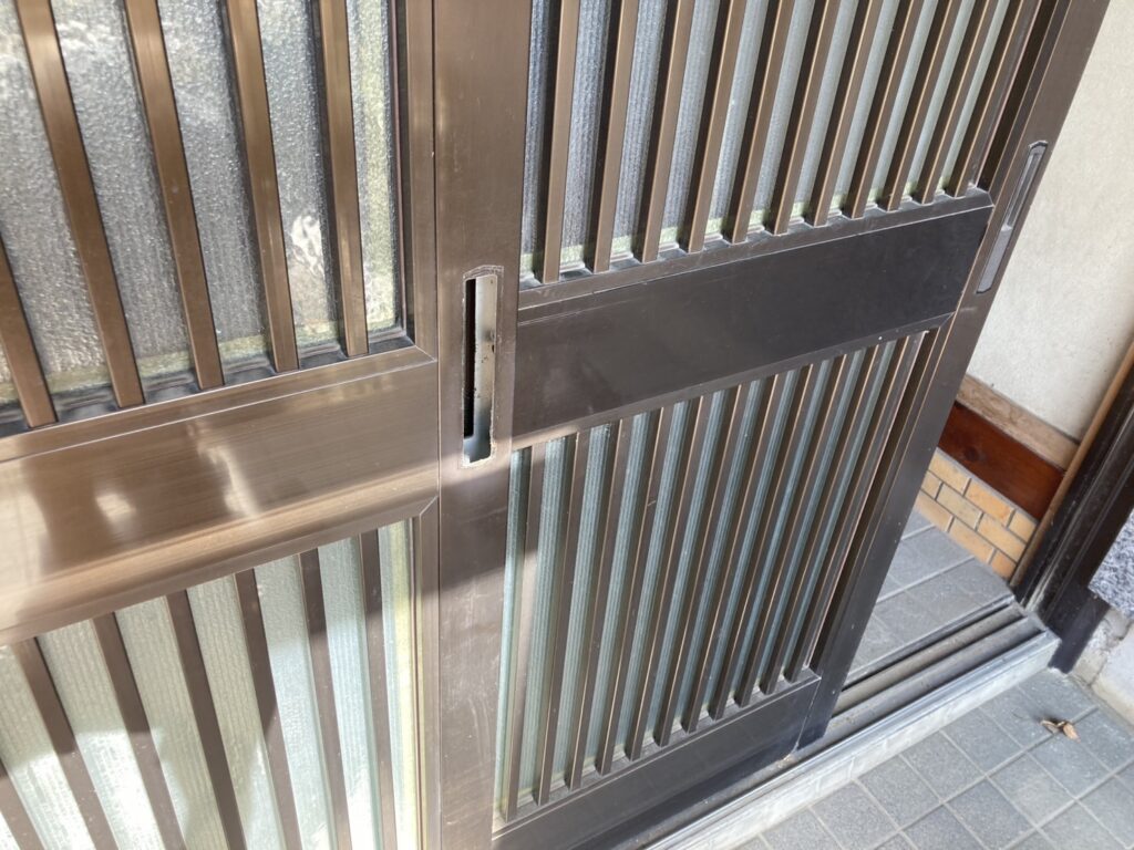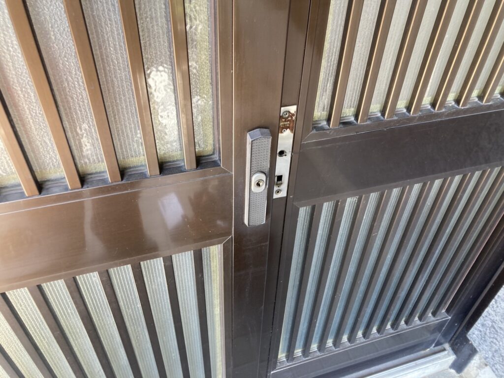 「玄関の引き戸の鍵が古く、開け閉めが固くなってきたので交換したい」とのご相談がありました。