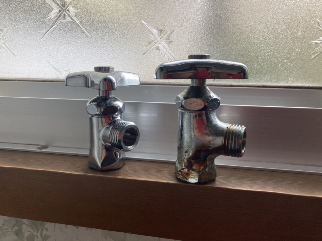 古い止水栓を取り外し、新しい止水栓へ交換。