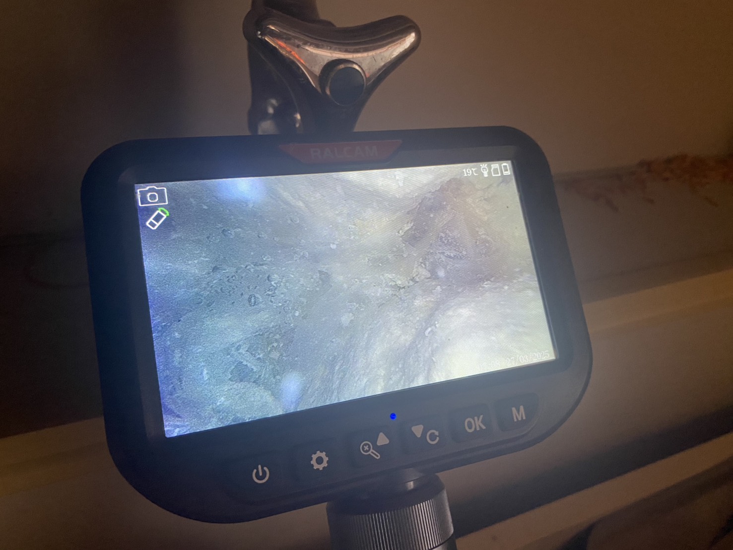 次に、スコープカメラを使って排水管の奥を確認しました。