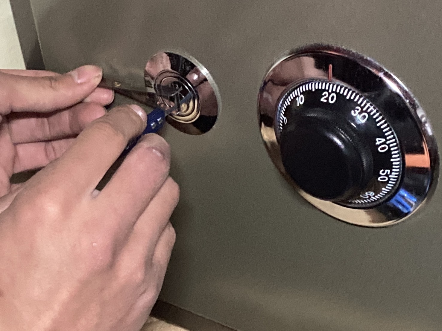 金庫を確認すると、ダイヤルは正常に動作しているものの、鍵穴の摩耗がやや進んでいました。