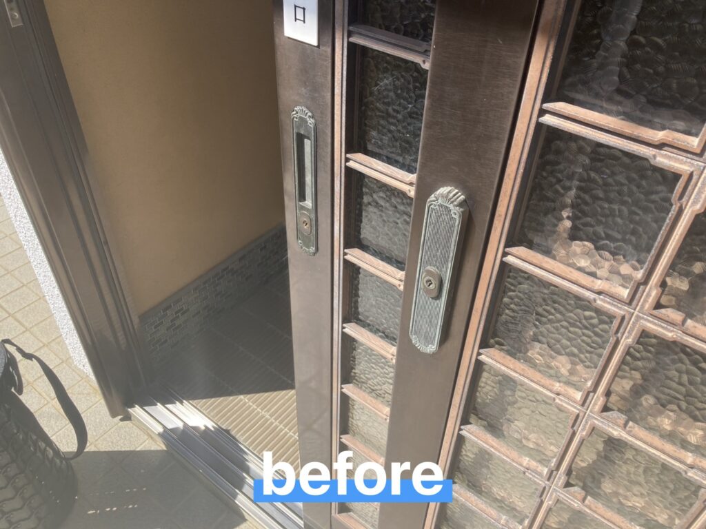 長年使用されていた玄関引き戸の錠部分が内部で破損しており、