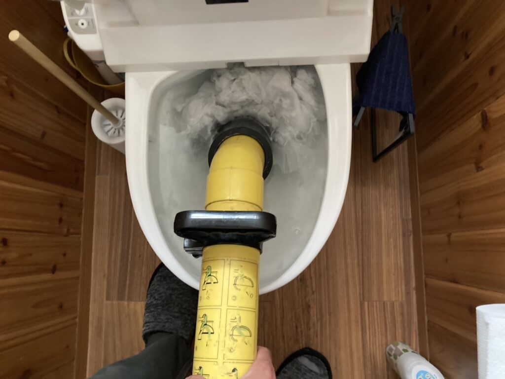 今回は、飯山市のお客様から「ワンちゃんのトイレ片付けでペーパーを大量に流したら詰まってしまった」とのSOSをいただき、急行した際の事例をご紹介します!