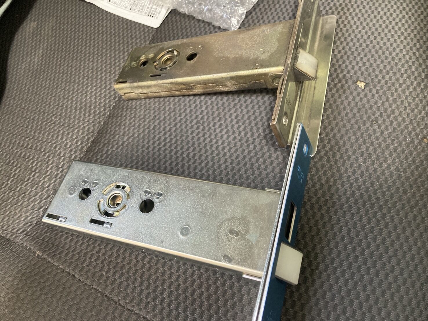 ドアノブ一式を取り外し、錠ケースを慎重に抜き取ります。