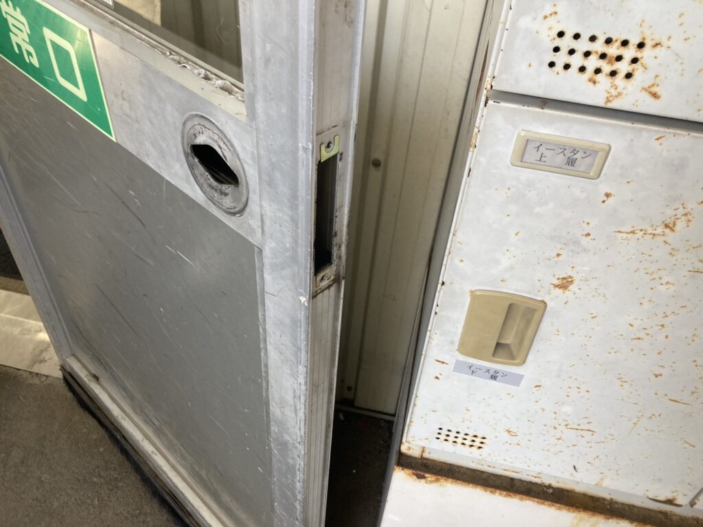 長年ご利用いただいている工場の出入口通路の開き戸。