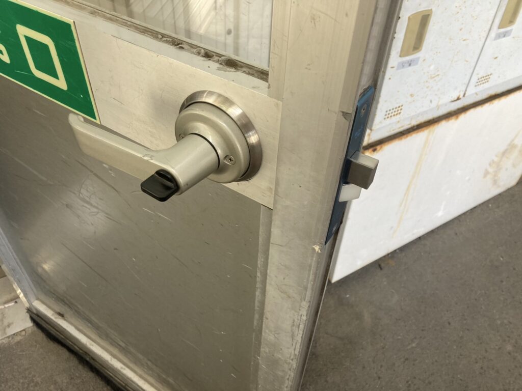 「出入口通路のドアノブが重くて開けづらい」というお悩みでした。