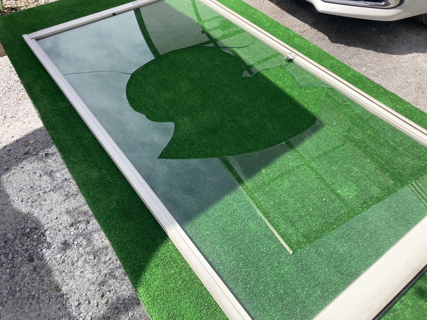 今回はFL3(フロートガラス3mm)を現場で切り出してぴったりサイズに仕上げました。