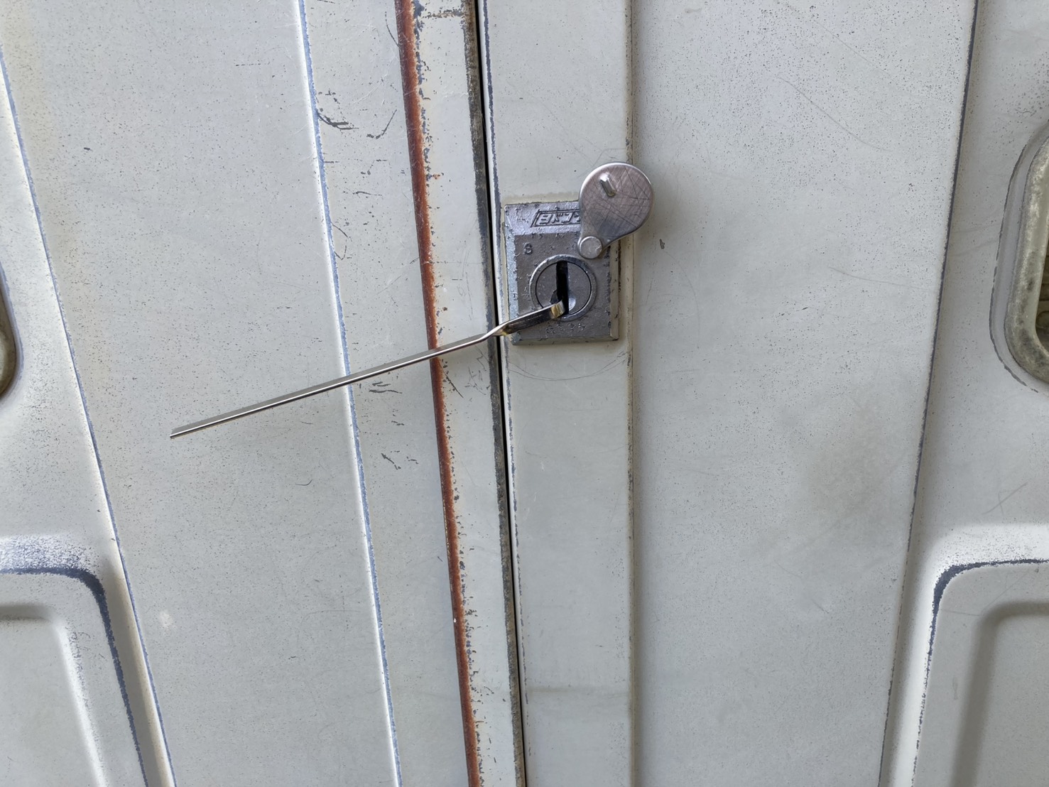 まずは倉庫のディスクシリンダーの解錠作業を慎重に実施。