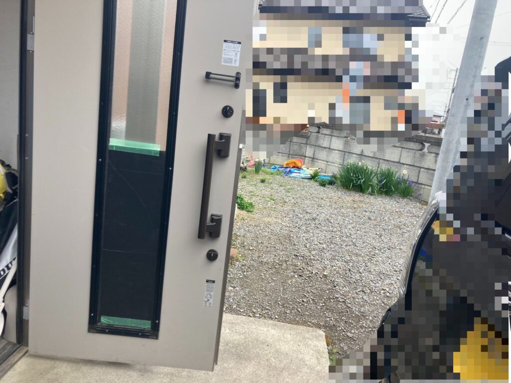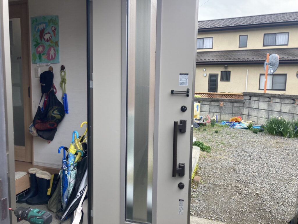 今回は長野市のお客様からのご依頼で、玄関開き戸のガラス交換を行いました。