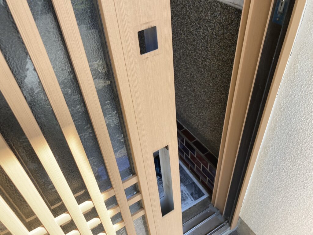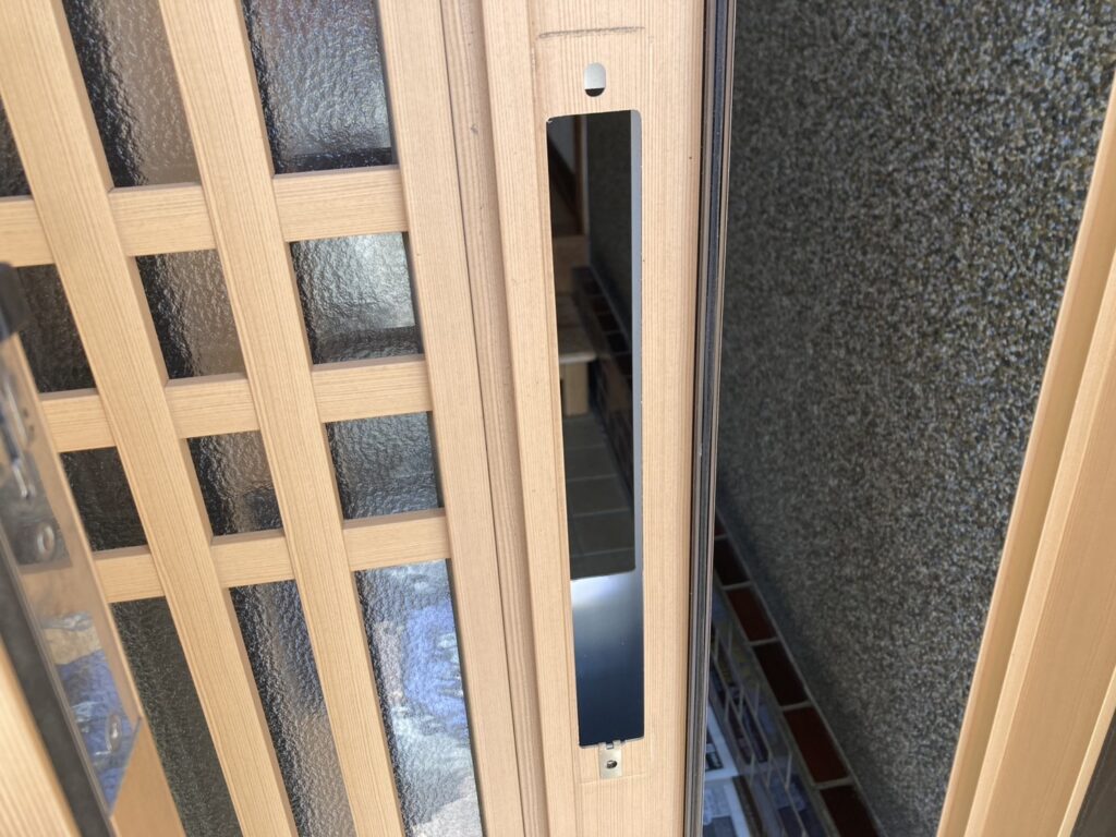 玄関引き戸は三協アルミ製で、使用されていた錠前はMIWA(美和ロック)のJBQAP2KC。