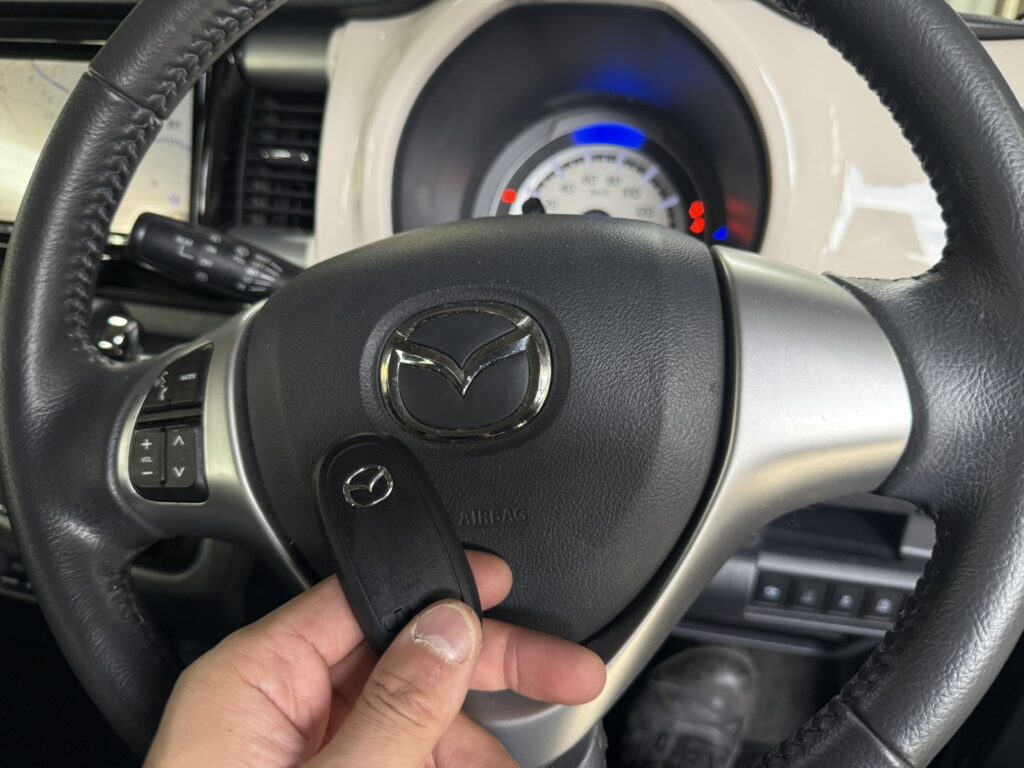 千曲市 マツダフロアクロスオーバー スマートキー紛失作製 投稿日 2025年10月22日 著者 川浦聖矢 カテゴリー 作業事例 車のカギを無くしてしまい作製して欲しいとお問い合わせをいただきました! 車種 マツダ フレアクロスオーバー 令和元年式 現場で車両のコンピューターの初期化を行い新しいスマートキーを登録して納品。 物理キー(メカニカルキー)も現場で鍵穴に合うようにカットしてお作りいたします。 ご依頼ありがとうございました! お問い合わせ この記事を書いた人 川浦聖矢 記事一覧